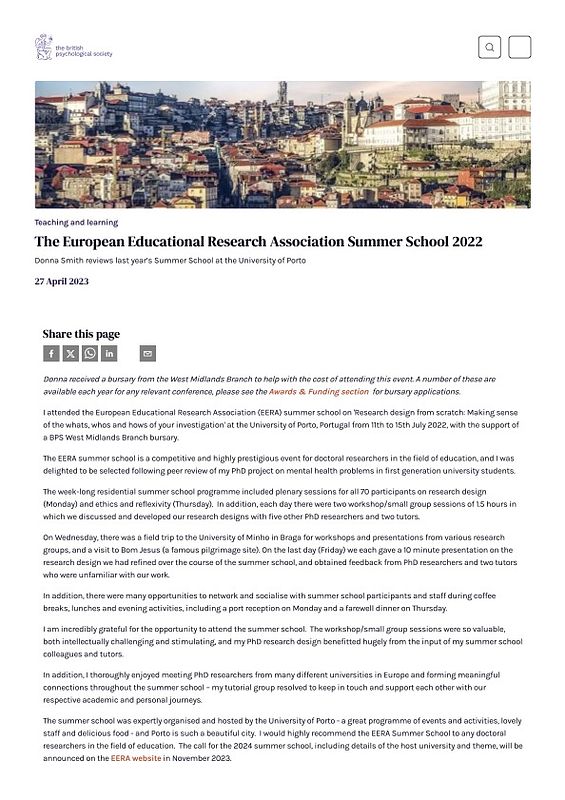 Smith, D. (2023). The European Educational Research Association Summer School 2022. British Psychological Society, 27 April.